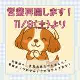 11月8日から、また看板犬のつむさんと共に皆さんのお越しをお待ちしております。